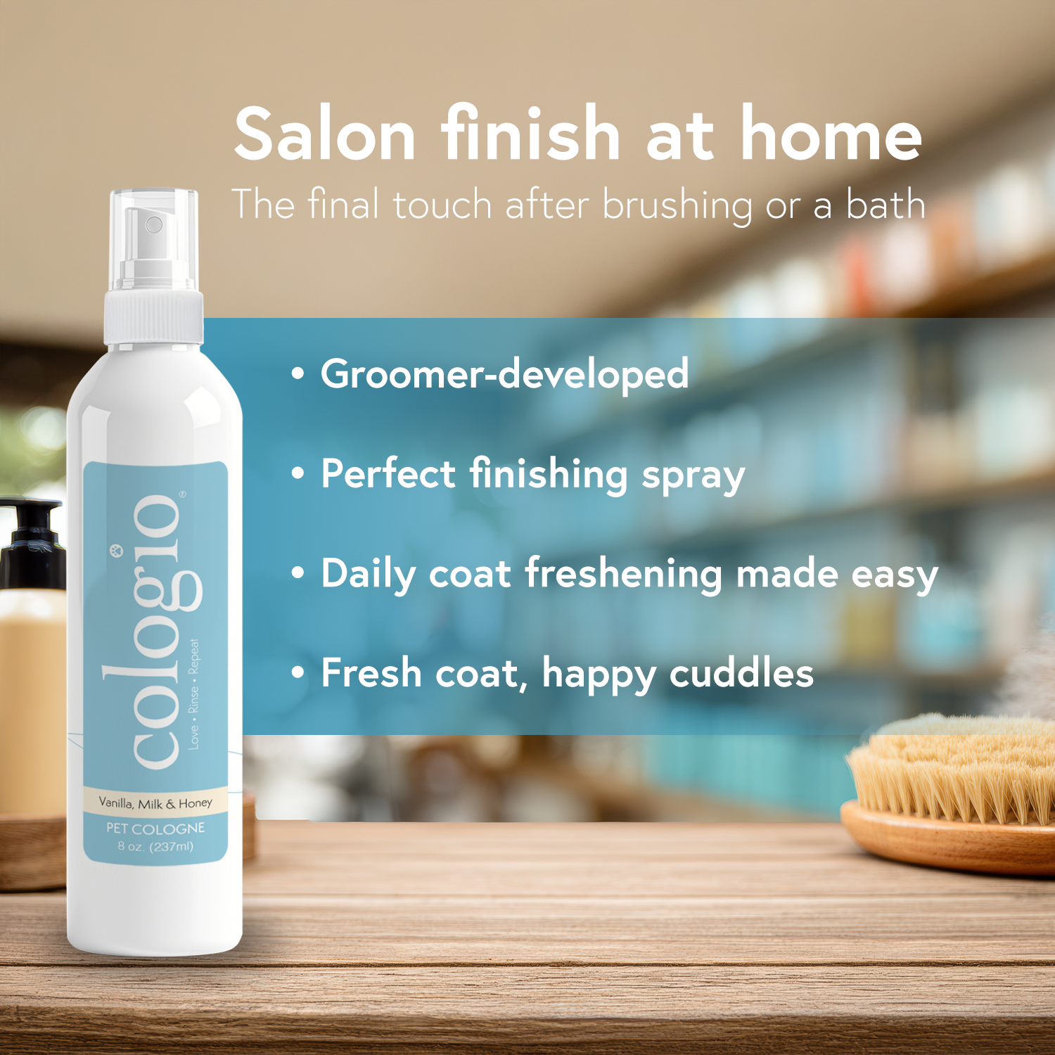 USA-made with sustainable, cruelty-free ingredients and recyclable packaging, Cologio spoils responsibly. Gentle mist shines coats sweetly, building trust. Pet parents feel heartfelt pampering without compromise.